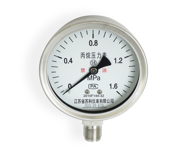 丙烷壓力表適用于測量密閉容器或者管道內丙烷氣體介質的壓力的場合,丙烷壓力表由導壓系統、齒輪傳動機構、示數裝置、和外殼所組成。外殼為氣密性結構,能有效的保護內部機件免受環境影響。